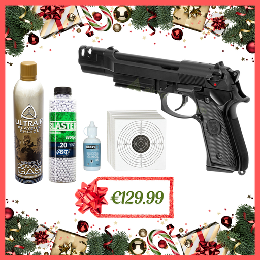 WEChristmas Deal! Includes all of the items below: WE M92 - Black Ultrair Power Green Gas - 570ml ASG Gamma Blaster 0,2g 5000 BBs 1kg Bag. Amomax M9...
