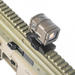• This red dot sight is mounted on a picatinny rail.