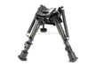 • A 6-position spring-loaded extendable carbon fiber legs bipod built from durable metal alloys with steel springs and mounting hardware.