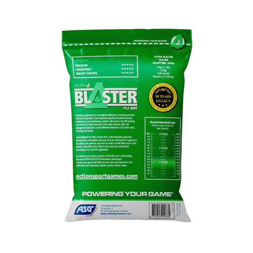 ASGBlaster Alpha is a brand of high quality BBs from ActionSportGames. These premium BBs are made from Biodegradable PLA. Made in Denmark, brand new ...