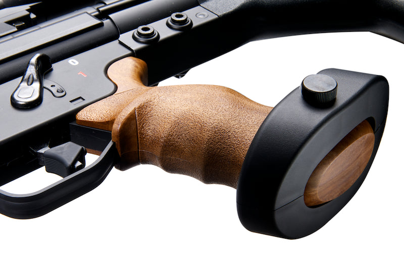 • The details on this rifle are precise, down to the pistol grip which has an adjustable palm stop.