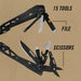 - Tools - Needlenose pliers, Regular pliers, Wire cutter, 2.25” plain / serrated combination blade, Scissors, Bottle opener, Awl, File, Wire stripper, Real cross driver, Large/Medium/Small flathead drivers, Can opener.